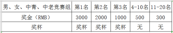 1、竞赛组赛事总奖金人民币5万元(税后),分别奖励各组前20名。