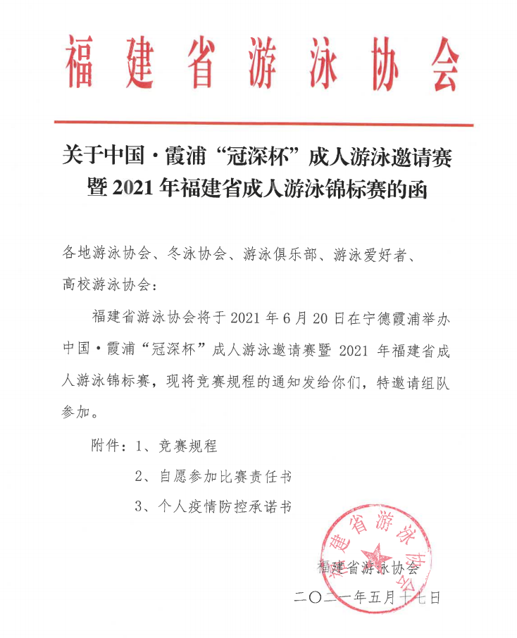 中国.霞浦“冠深杯”成人游泳邀请赛暨2021年福建省成人游泳锦标赛竞赛规程[url=]福建省游泳协会[/url] [color=rgba(0, 0, 0, 0.298)]前天